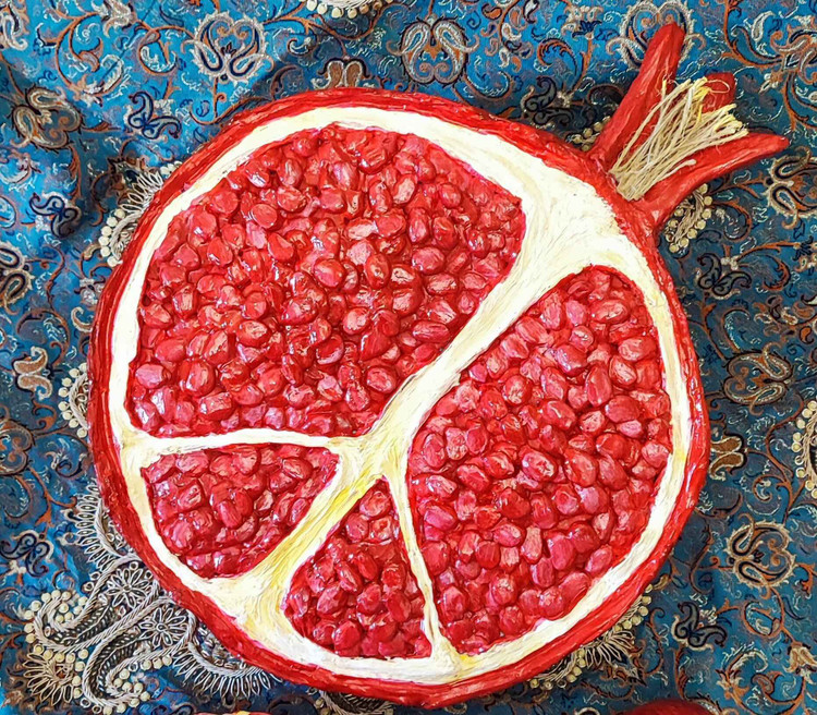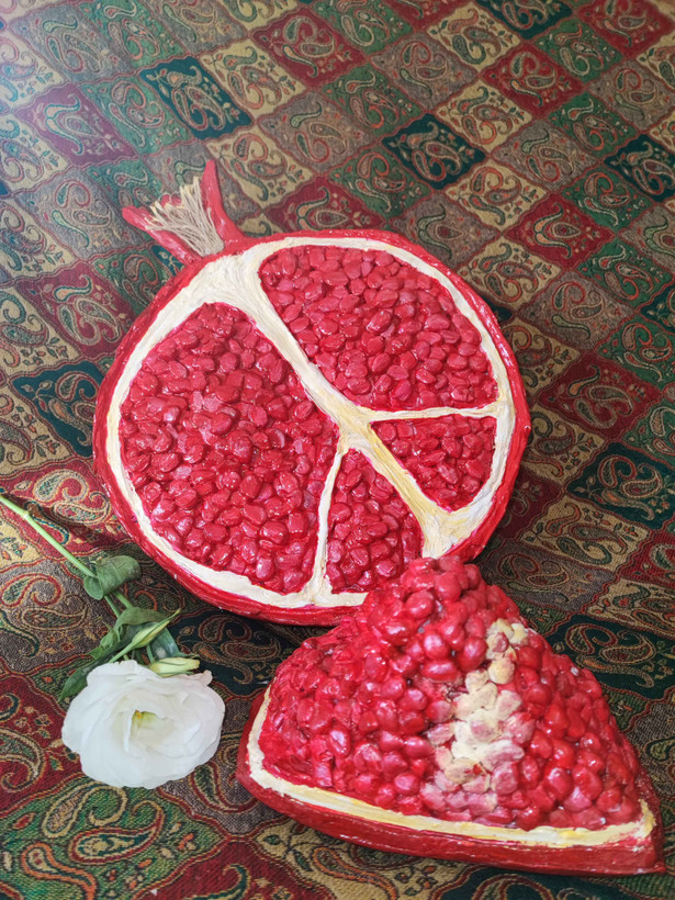 "ماکت برشی از انار که دستساز با دانههای قابل مشاهده - قطر ۳۰ سانتیمتر، ارتفاع ۳۷ سانتیمتر"