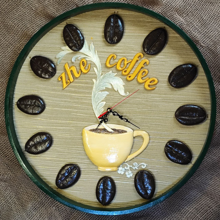 ساعت دیواری منحصربهفرد با طراحی اختصاصی برای کافه ژ؛ ترکیبی از چوب طبیعی و عناصر گرافیکی مرتبط با فضای گرم کافه. انتخابی عالی برای تزئین دیوار، با سبک هنری و حس دعوتکننده.