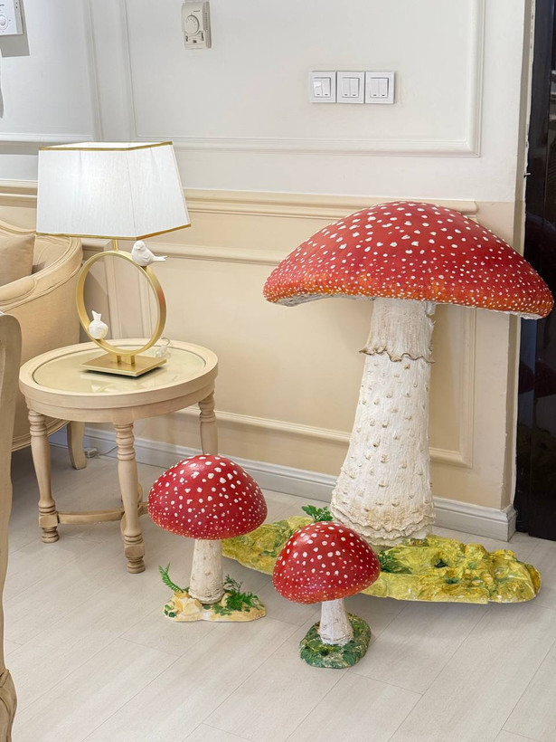 یک ماکت قارچ به ارتفاع یک متر با تمام جزییات یک قارچ طبیعی به صورت سه تکه درست شده که امکان حمل و نقل ان راحت باشد . تمام تیغه های زیر کلاهک قارچ دراورده شده و امکان عکاسی از نمایی زیر قارچ در عکاسی نوزاد را نیز فراهم می اورد.