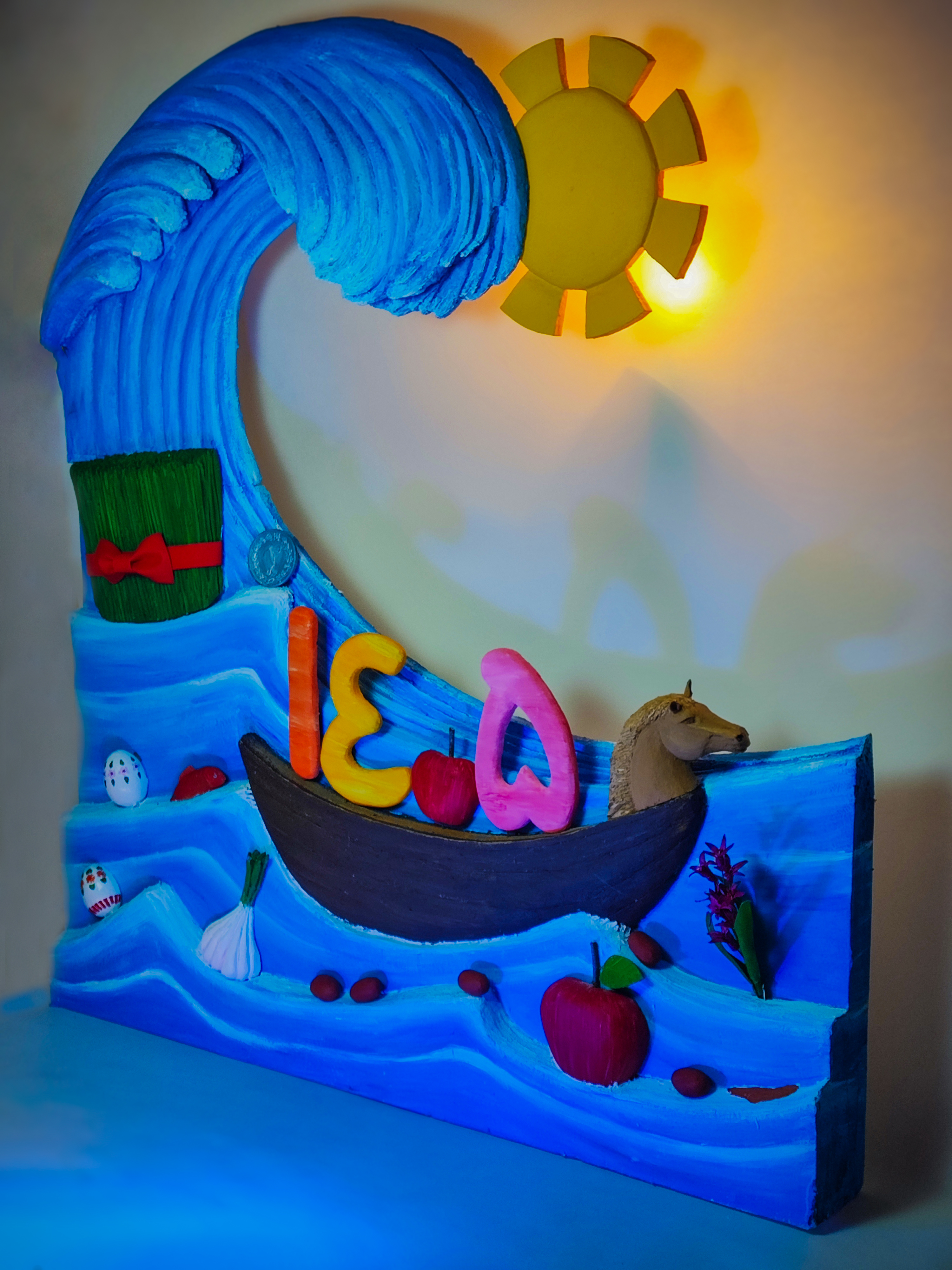 ماکت هنری "روایت دریا و نوروز" یک ماکت هنری و دستساز طراحی شادیکادکور برای نوروز 1405است که قایق و موج های ابی ، هفت سین، سردیس اسب و عدد 1405 در یک ترکیب شاعرانه در کنار هم قزاز گرفته اند . این دکور ویژه آتلیه های کودک، خانوادگی طراحی با جزییات دقیق ساخته شده و قاب نوروزی را شاعرانه و متفاوت و چشم گیر می کند