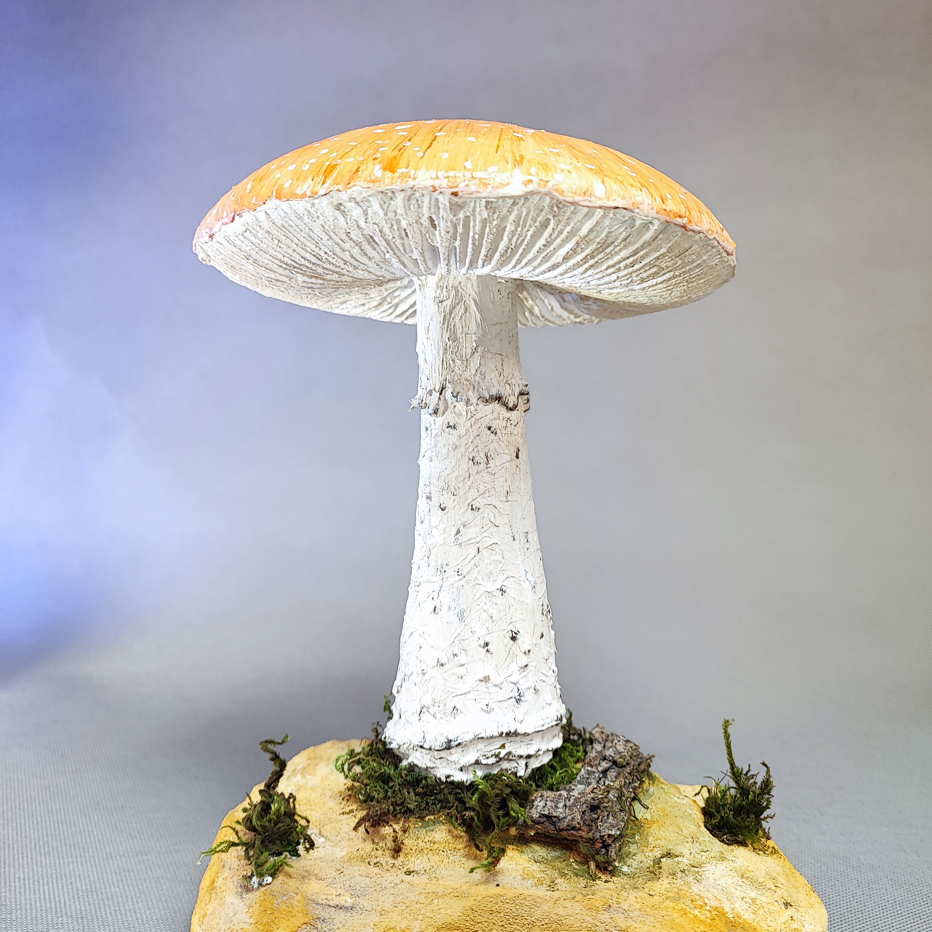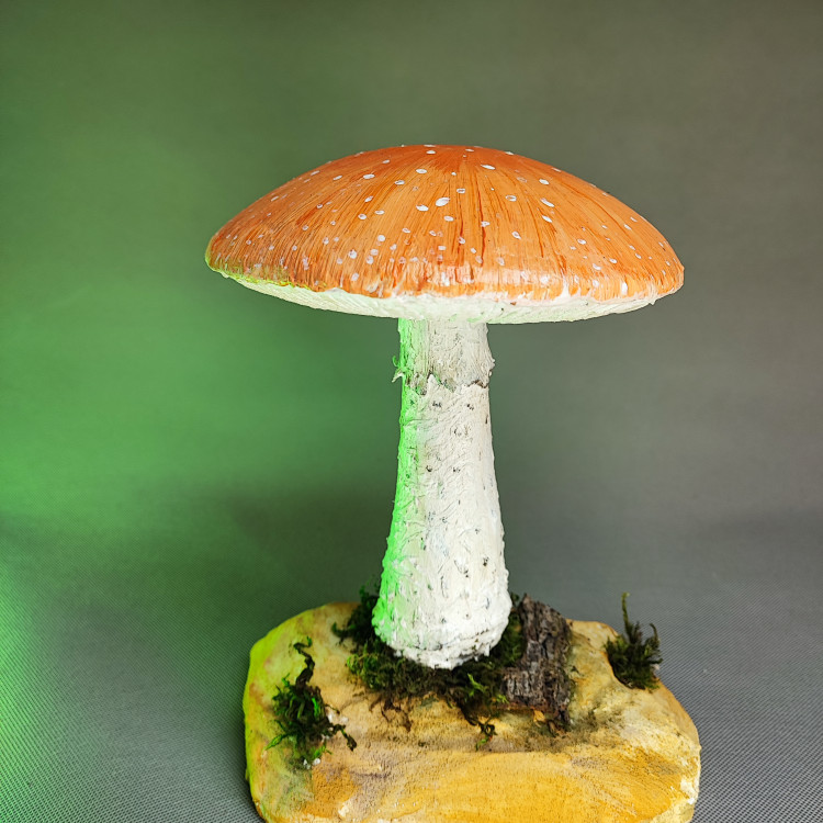 ماکت قارچ با استند و تمام جزییات یک قارچ طبیعی مستحکم و ماندگار. تمام تیغه های زیر کلاهک قارچ دراورده شده و امکان عکاسی از نمایی زیر قارچ را نیز فراهم می اورد.