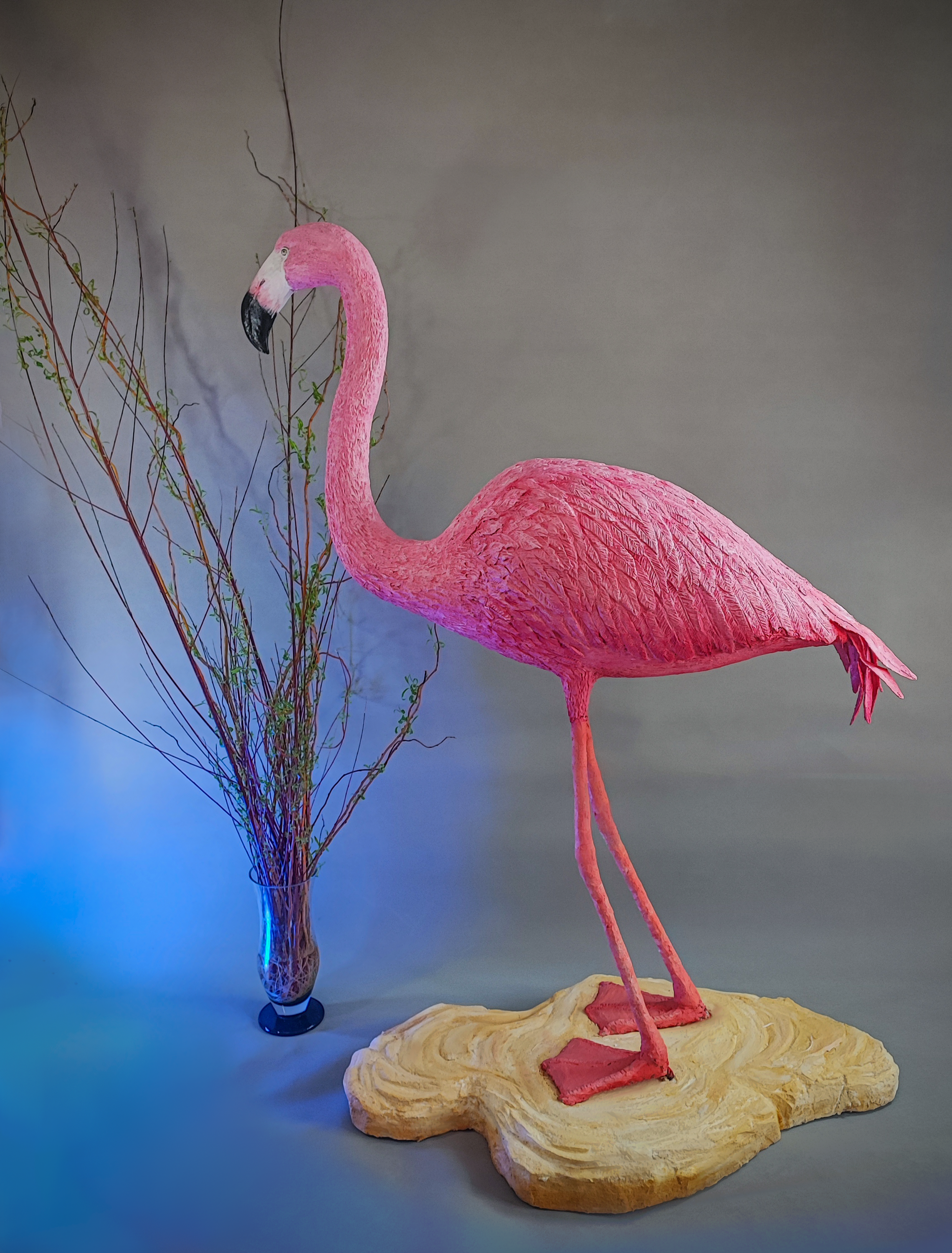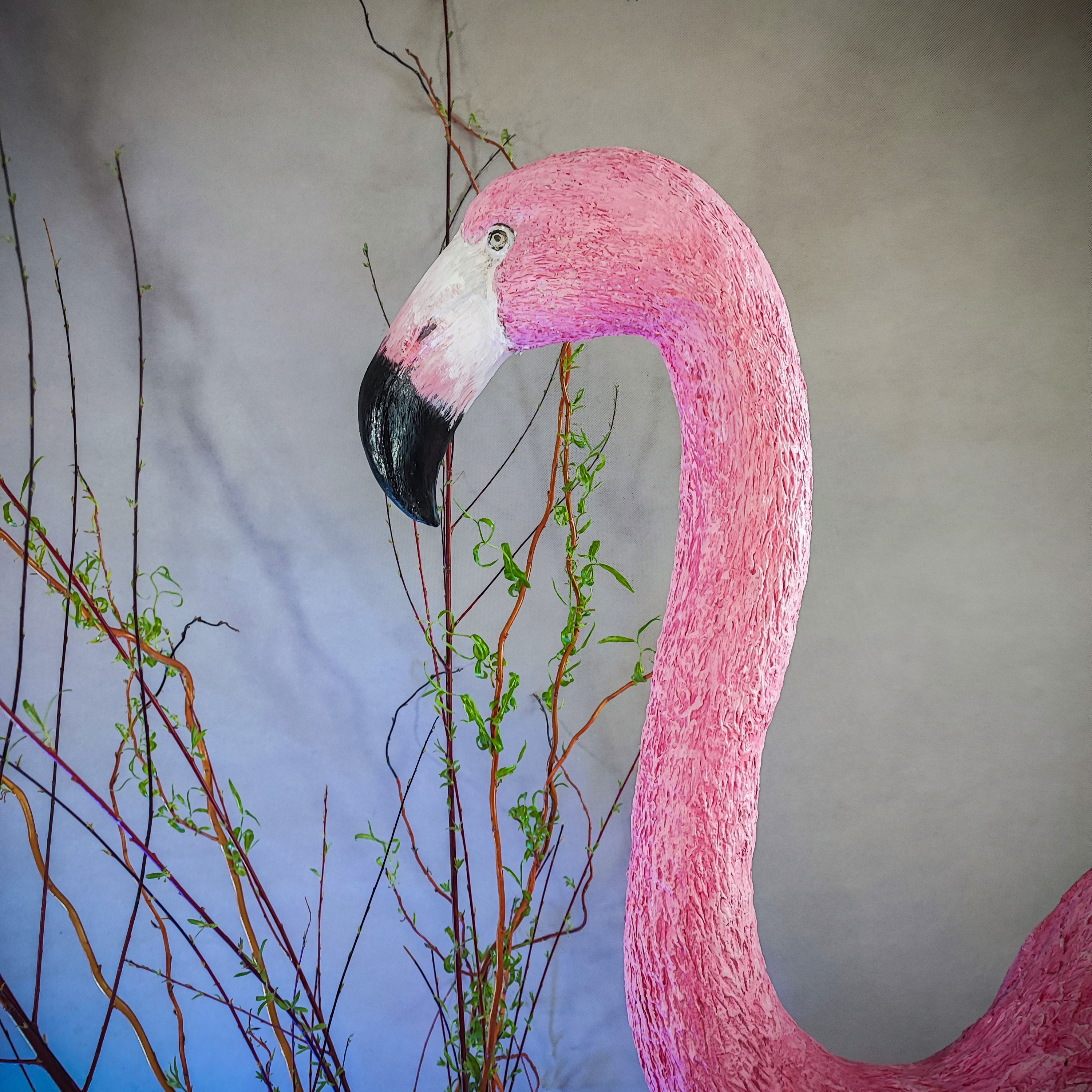 ماکت فلامینگو ۱۵۰ سانتی با تمام جزییات مناسب ویترین فروشگاه و دکور نمایشگاه تبلیغاتی ،دکور اتلیه، دکور ویلا قابل ساخت در سایز دلخواه. زیبایی در جزییات است. شادیکادکور.